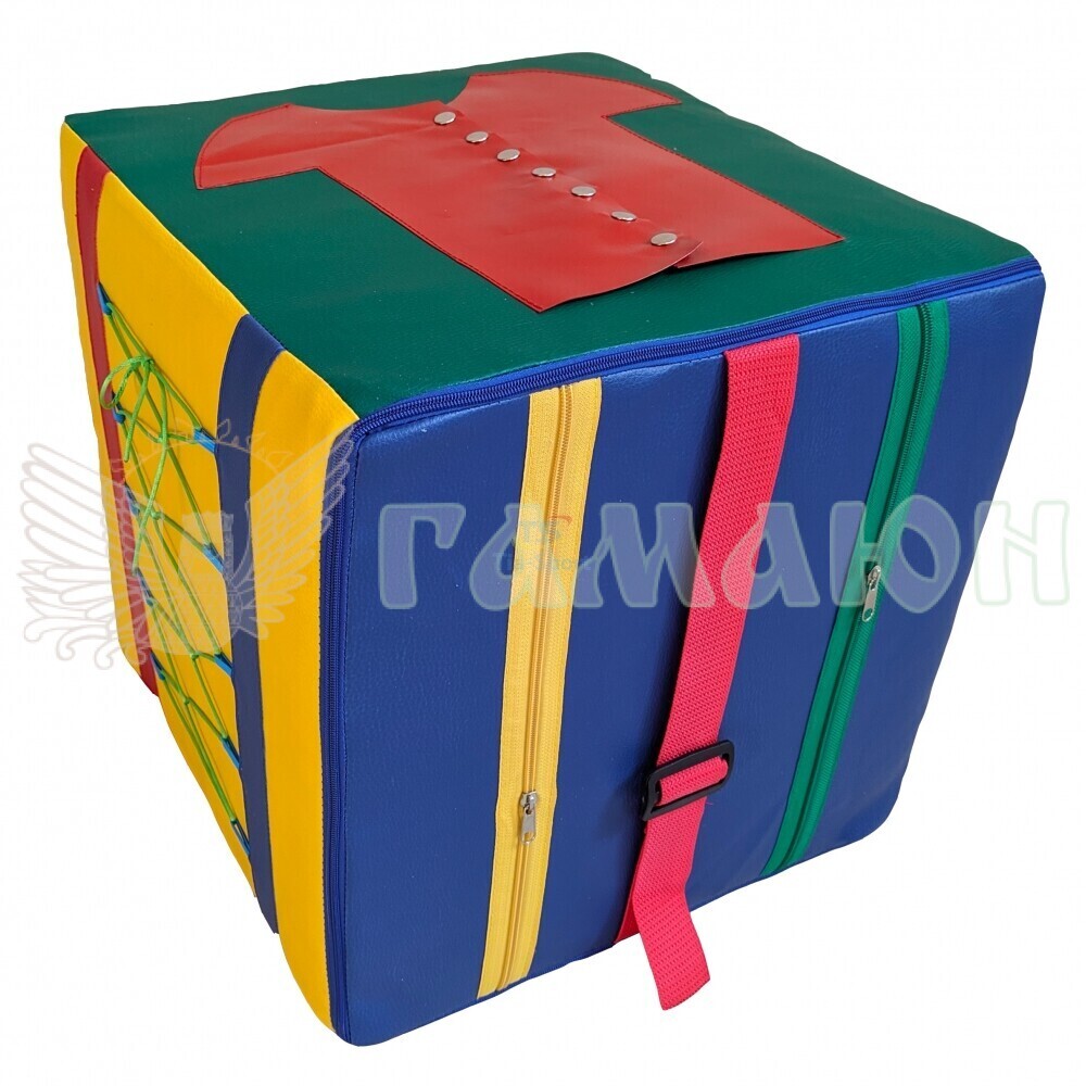 Виріб являє собою ігрову поверхню з вставками навчальних елементів - застібки, замки, шнурівка, липучки, вікна тощо. Також є нанесення зображень для розвитку кругозору дитини, вивчення форм, кольорів, природи.