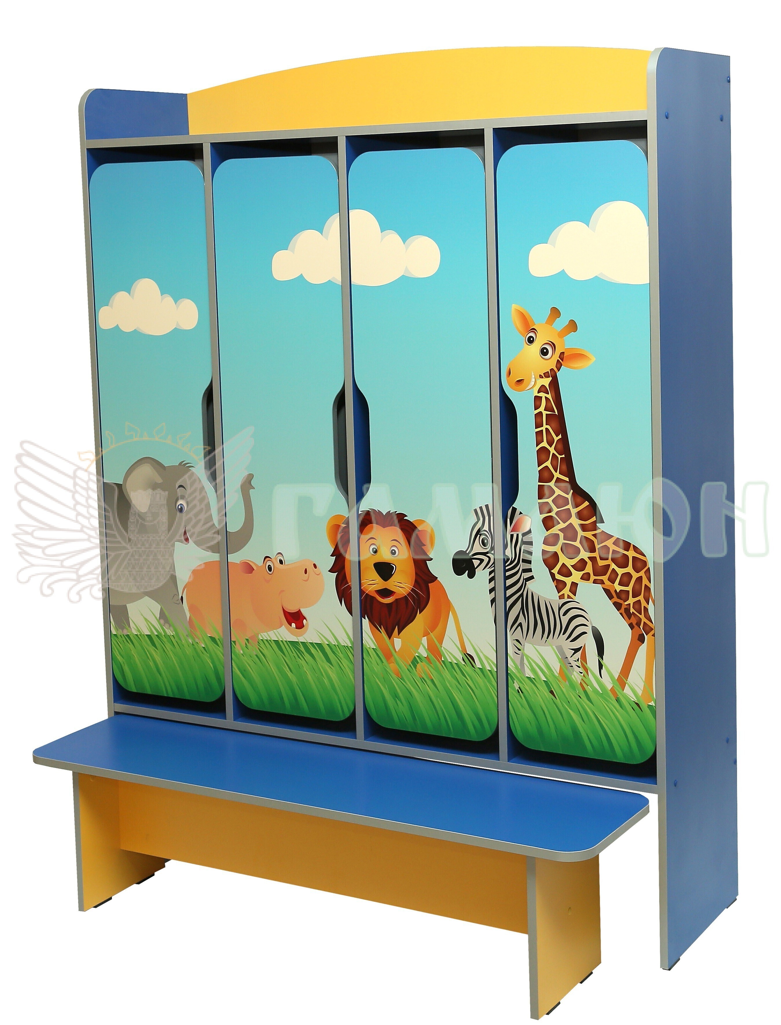 Шафа дитяча 4-місна для роздягальні з фотодруком «Савана» та лавою