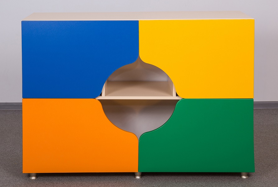 На дверцятах присутні фігурні вирізи, що дозволяє підвищити безпеку дітей, шляхом відмови від використання виступаючих ручок.