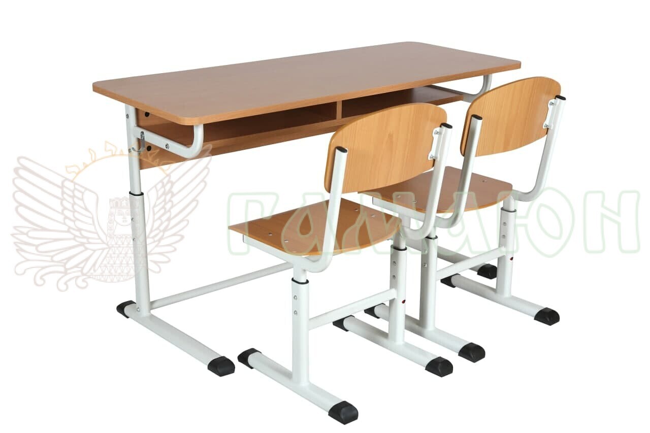 Комплект стіл учнівський 2-місний на плоскоовальній трубі, регульований по висоті, №4-7 + стілець Т-подібний регульований по висоті №4-7 з покриттям HPL