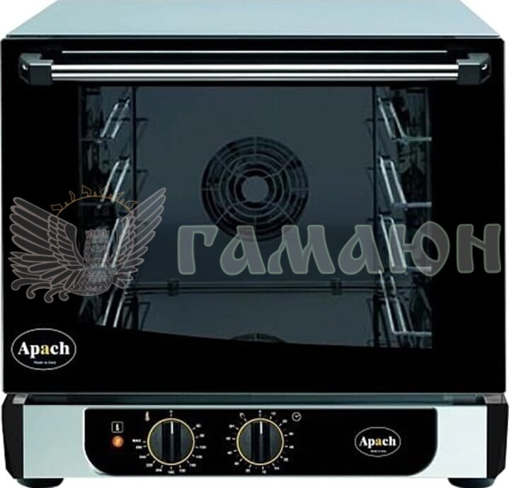 Конвекційна піч Apach AD44 M ECO є оптимальним рішенням для невеликих пунктів громадського харчування. Ідеально підходить для приготування смачної випічки, кондитерських виробів. Дана модель допоможе вам розігріти або розморозити піцу, легко покриє рум'яною скоринкою лазінью, збереже тепло в готововій страві протягом тривалого часу. Apach AD44M ECO - проста та практична модель з механічним керуванням та 4 рівнями природної обробки. Широка амплітуда температурного режиму дозволяє заощаджувати енергію. Оснащена електромеханічною панеллю керування. Обладнання затребуване у бістро та літніх кафе. Корпус виготовлений із нержавіючої сталі. Емальована робоча камера.