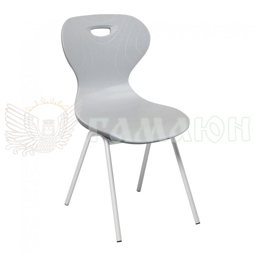 Технічні характеристики: Габаритні розміри виробу становлять 435×500×840 мм. Сидіння та спинка формуються як єдиний дутий моноблок, виготовлений методом лиття під тиском із якісного поліпропілену. Моноблок має плавні округлення та вигнуту ергономічну форму, що забезпечує зручність посадки та знижує тиск на хребет. У спинці передбачено отвір для зручного переміщення виробу. Каркас виготовляється з металевої круглої труби діаметром 20 мм із товщиною стінки не менше 1,5 мм. Металеві елементи з'єднуються з моноблоком за допомогою шестигранного гвинта. Покриття каркасу — сірого або графітового кольору, виконується методом порошкового фарбування. Усі торці металевих труб закрито пластиковими заглушками для захисту підлогового покриття.