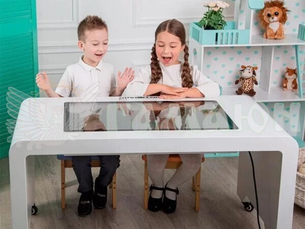Дитячий інтерактивний стіл INTBOARD STYLE має діагональ 32 дюйми, ідеально підходить для навчання чи розваг до 6 дітей одночасно. Має яскраві кольори. Виготовлений з екологічно чистих матеріалів, що дозволяє його використовувати дітям.