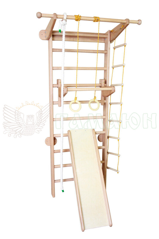 Допустимі динамічні навантаження на перекладини шведської стінки і турнік – 100 кг, на мотузковий набір – 60 кг, на дитячий турнічок – 60 кг, на дитячу гірку – 50 кг.