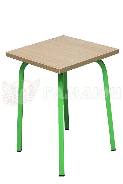 Пластикові заглушки попереджають пошкодження покриття підлоги. Сидіння виготовлено із ДСП товщиною 16 мм. Каркас виготовлено зі сталі (труба перетином 20х20мм). Сталь найбільш оптимальний матеріал для шкільних меблів – вона не горить, не абсорбує токсичні речовини, проста та зручна в догляді. Зварні шви старанно відшліфовані.