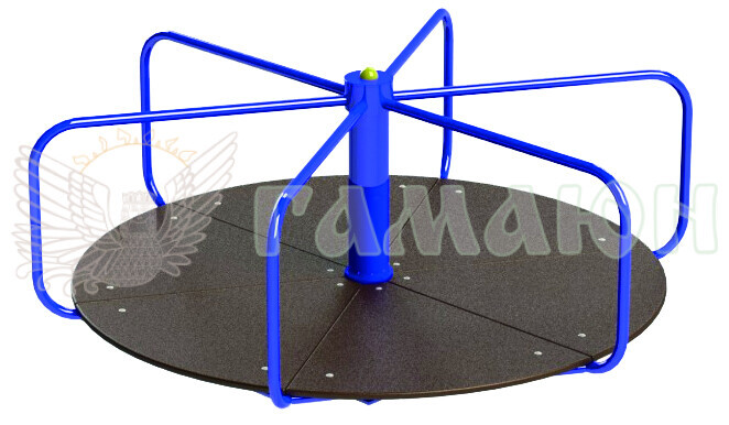 Карусель велика стоячи  - це класичний ігровий елемент для дитячого майданчика який принесе користь та радість Вашій дитині. Карусель є чудовим доповненням до решти дитячого ігрового обладнання на дитячому майданчику, за яким Ваші діти весело гратимуться. Підходящий варіант як для приватних будинків, так і для дитячих майданчиків. Карусель розділена на шість секцій, відповідно одночасно їй можуть користуватися шестеро дітей. Поручні та сама конструкція виконана з металу. Виробник дбає про безпеку маленьких користувачів, тому всі матеріали лише з високоякісних матеріалів, металевих та дерев'яних компонентів. Карусель покрита високоякісною емаллю найкращих європейських виробників. Металеві елементи покриті порошковими фарбами стійкими до погодних умов.