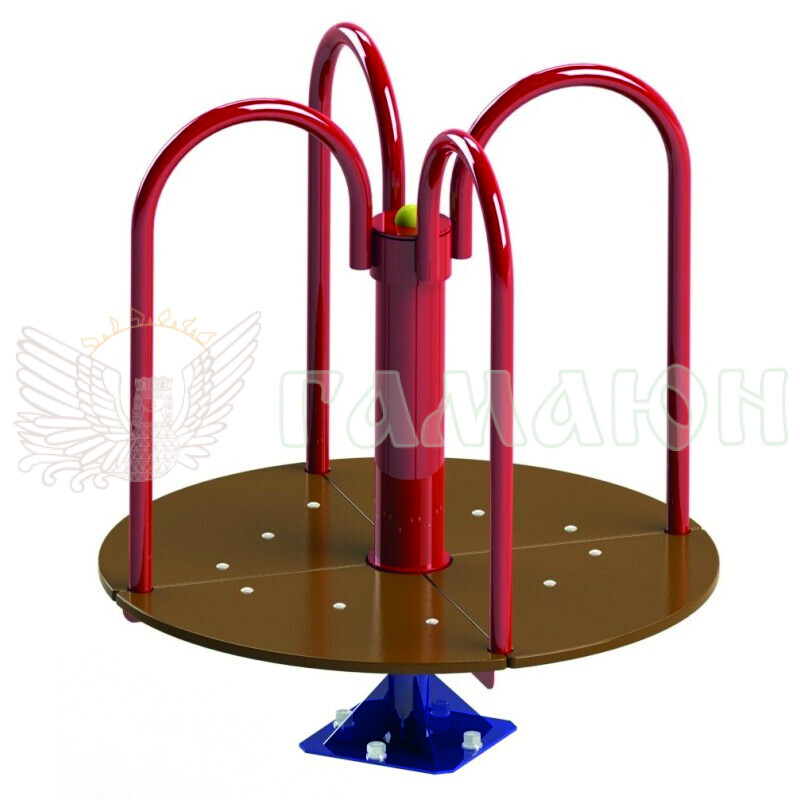 Карусель мала  призначена для активного відпочинку дітей на ігрових майданчиках. Карусель дає можливість зібрати велику масу дітей, що дозволяє розвивати комунікабельність у малюків і фізичні здібності. Карусель – це один із головних елементів дитячих майданчиків, який приносить дітям багато емоцій, радості та усмішок. Карусель виготовлена ​​з високоякісної та екологічно чистої сировини, що підтверджує наявність сертифікатів та гігієнічний висновок. Вологостійка фанера відшліфована та пофарбована німецькою фарбою для зовнішніх робіт, металеві частини відпескоструєні та пофарбовані порошковою полімерною фарбою для зовнішніх робіт. Всі фарби водостійкі і не втрачають своєї яскравості від УФ випромінювання (не вигорають). Пластикові ковпачки захищають від викручування болтів, які з'єднують конструкцію, і убезпечують від ударів або зачепів у процесі гри.
