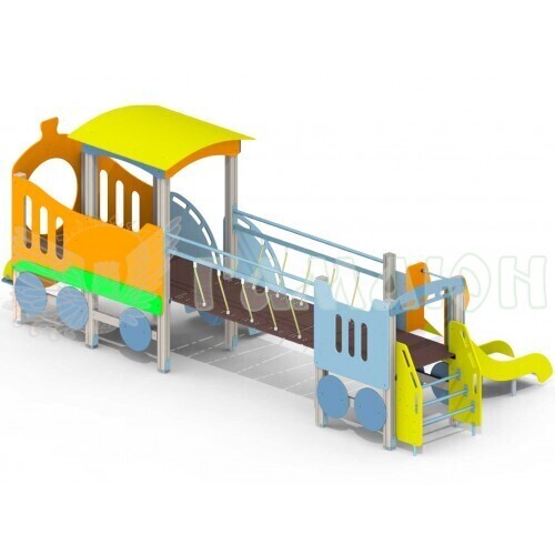 Поїзд з вагончиком призначений для сюжетно-рольових ігор на дитячому майданчику. Основна категорія дітей, на яку він розрахований, діти від 3 до 6 років. Дитяча гірка має захисні бортики висотою 10 см. Дана модель розвиває уяву і фантазію у дітей.