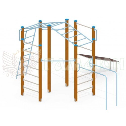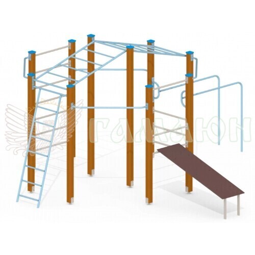Дитячий спортивний комплекс призначений для активної гри дітей на свіжому повітрі після 12 років. Розрахований на велику кількість дітей. Дерев'яний спортивний комплекс має оригінальну форму кола.