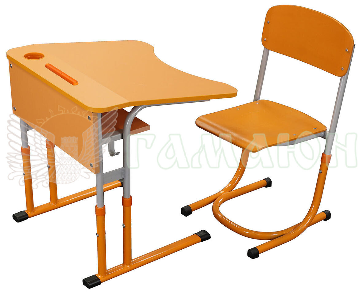 Стіл складається з стільниці ергономічної форми (закруглені кути з 4-х сторін), полиці та екрану між металевими каркасами. На боковій стійці каркасу закріплений гачок. Стільниця конструктивно складається з двох частин зрощенних між собою на клейовий шип: горизонтальної розміром 600х120мм та похилої розміром 600х450 з кутом нахилу до горизонтальної площини 8°. Горизонтальна кришка має отвір для стакану з правої сторони від учня. На ній монтується також пенал з поліетилену. Похила кришка має виріз з боку учня радіусом 300 мм та глибиною 85 мм. Кути заокруглено радіусом 20 мм. На торцях каркасу закріплені пластикові наконечники, які запобігають травмуванню учнів та пошкодженню підлоги.
