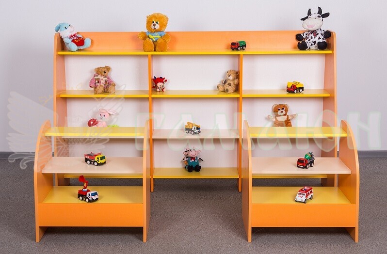 Стінка “Магазин” складається із стелажу та 2 тумб. Така кількість корисного місця надасть можливість після гри вдало розмістити багато іграшок та книг для зберігання.