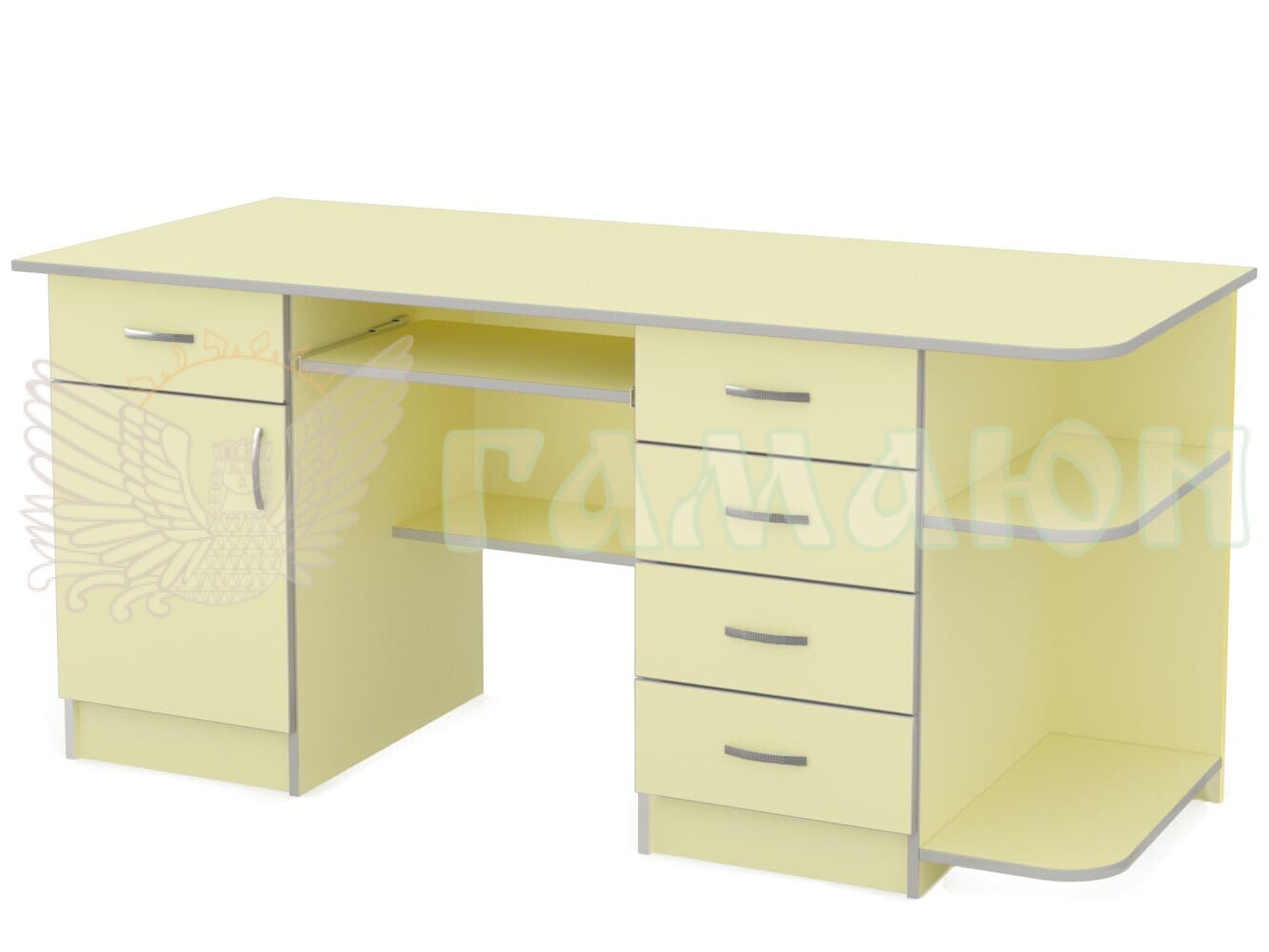Стіл виготовляється з ламінованого ДСП товщиною 16 мм Корпус і фасад обклеюється кромкою ПВХ 0,5 мм, стільниця і кришка тумб ПВХ 2 мм. Роликові направляючі. Колір корпусу - як на фото. Можлива зміна кольорової палітри.