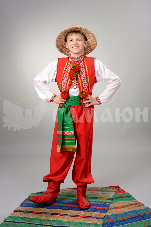 4. Жилет з червоного габардину з нашитим орнаментом, оздоблений балабонами