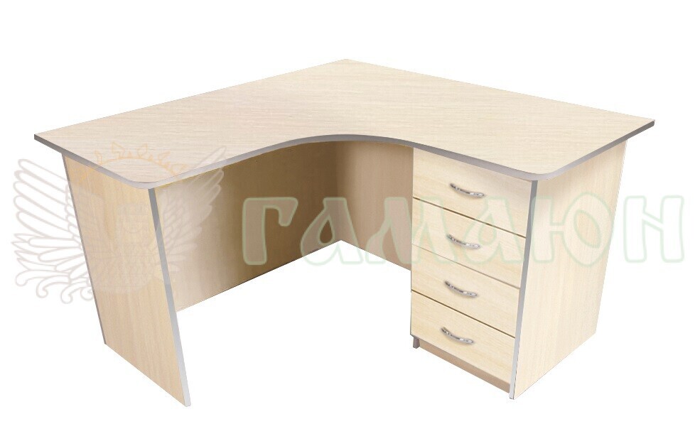 Наявні 4-и шухляди праворуч. Кути столешні заокруглені.