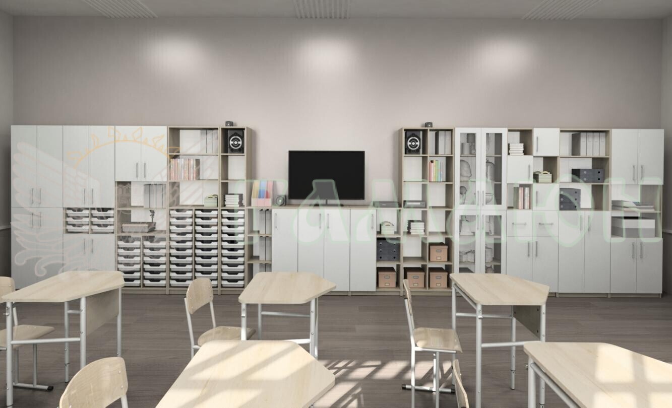 Стінка для предметних кабінетів — універсальне рішення для освітнього простору, яке поєднує функціональність, модульність і візуальну цілісність. Завдяки конструкції з 13 елементів, кожен модуль можна використовувати автономно або в складі композиції відповідно до конфігурації кабінету.