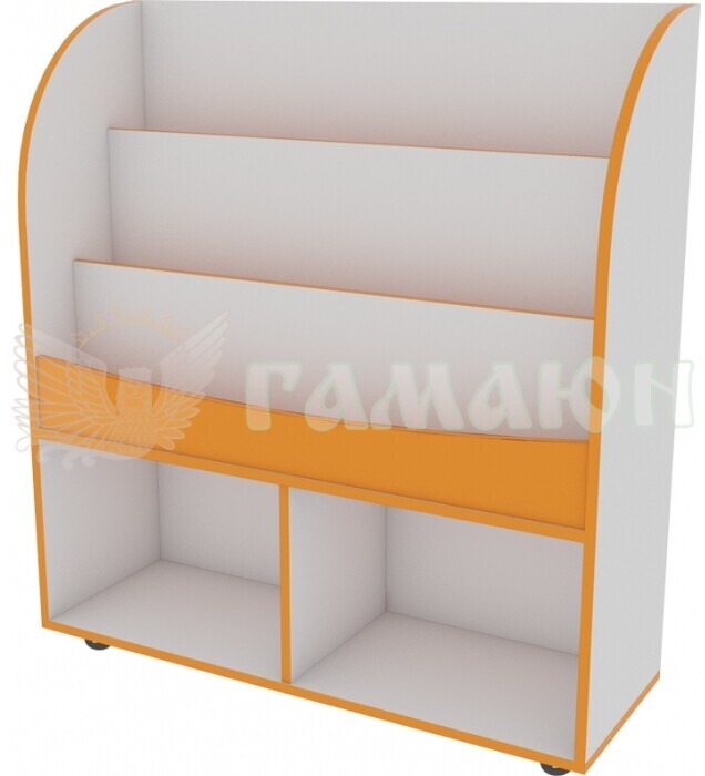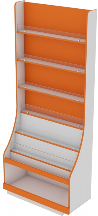 Виставковий стенд для літератури. Габарититні розміри: (ширина х глибина х висота): 970х330х1080 мм.