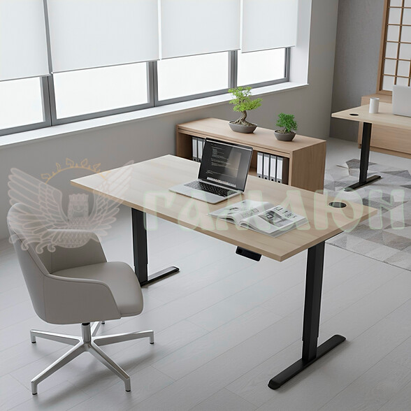 Модель оснащена одномоторним підйомним механізмом, який забезпечує плавне регулювання висоти. Стіл оснащений пультом керування та має 3 програмовані позиції пам’яті, які дозволяють зберігати улюблені висоти для швидкого перемикання. Користувач може легко змінювати положення роботи — з сидячого на стояче — за допомогою пульта керування. Висота столу регулюється за допомогою пульту від 718 мм до 1178 мм.