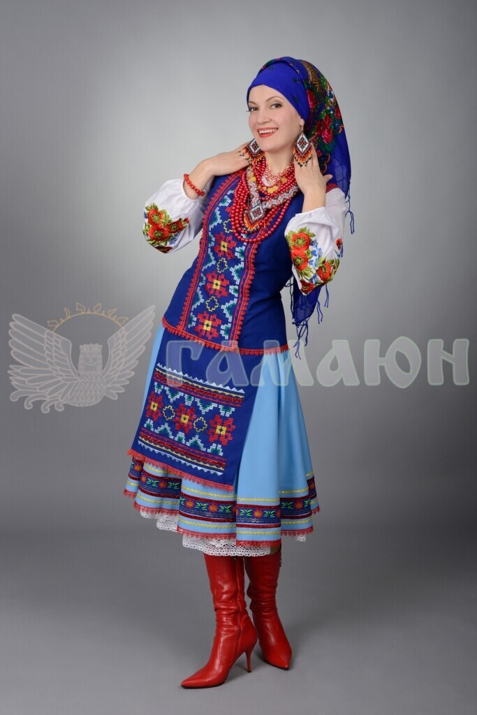 2.Блакитна спідниця "півсонце", оздоблена тасьмою, в’юнками та бархатною стрічкою