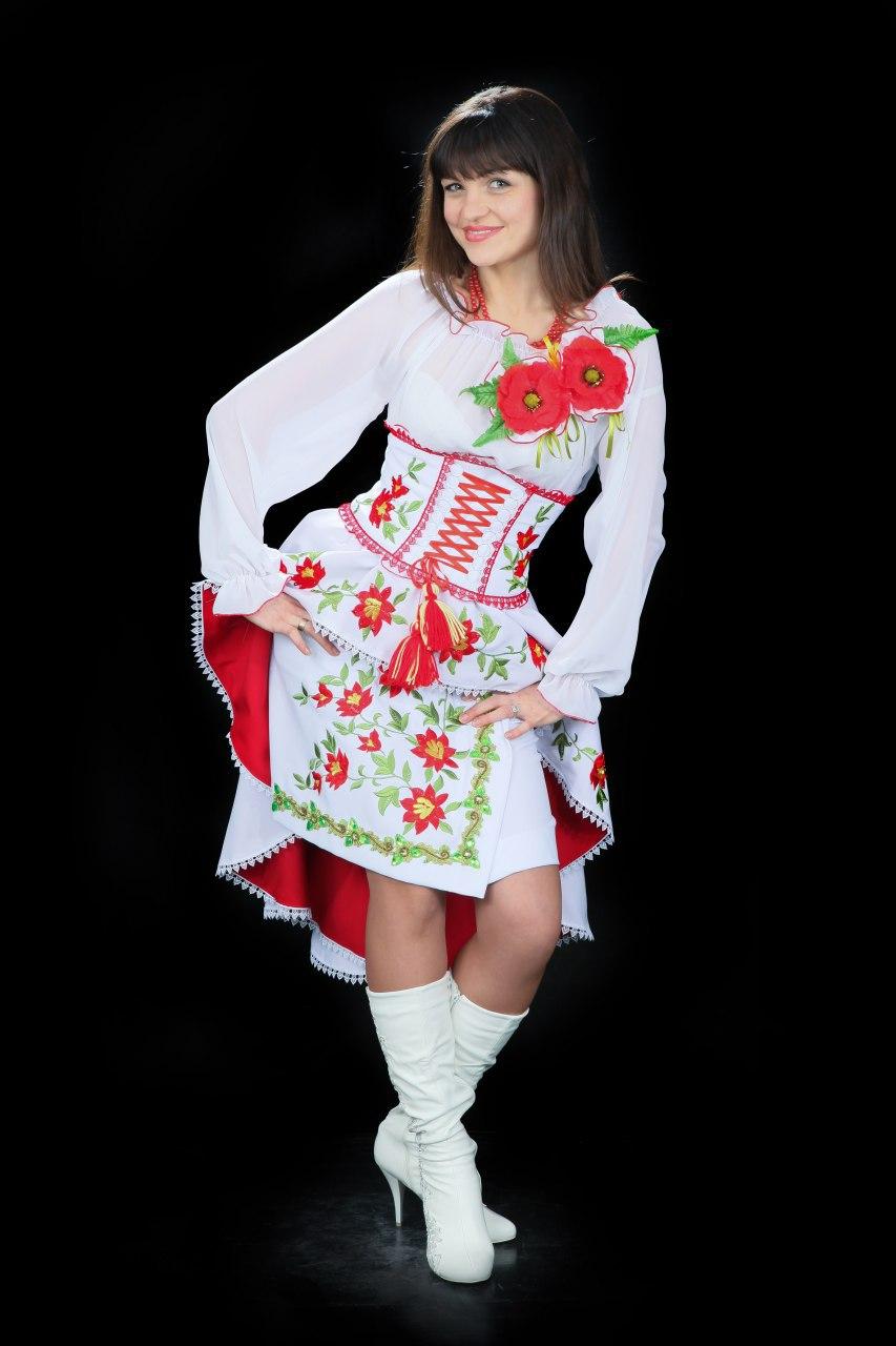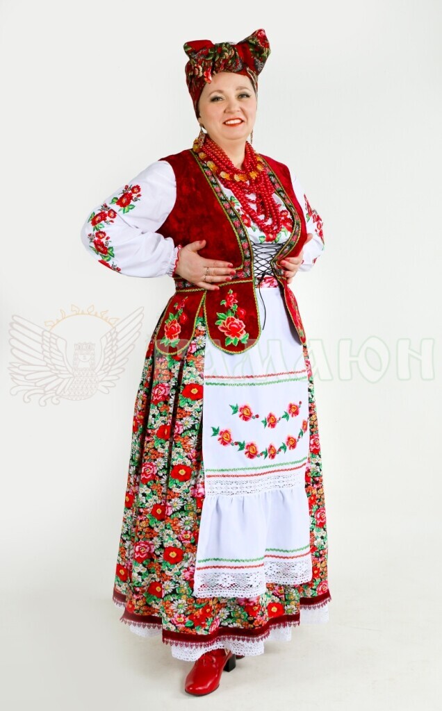 2. Спідниця з яскравого штапелю, забарвлення тканини може змінюватися, подвійний під’юбник, оздоблений домотканним кружевом