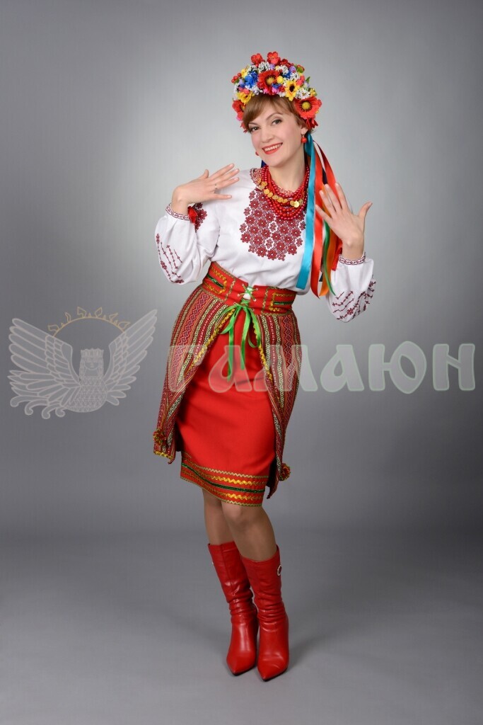 2. Червона спідниця з домотканного полотна з декоративним поясом