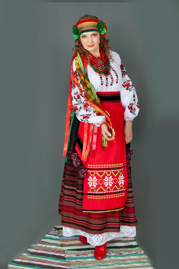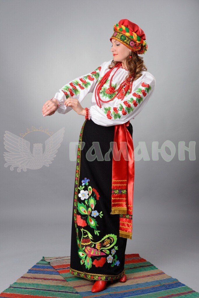 1. Довга плахта з вишивкою «Птаха в калині» на чорному фоні