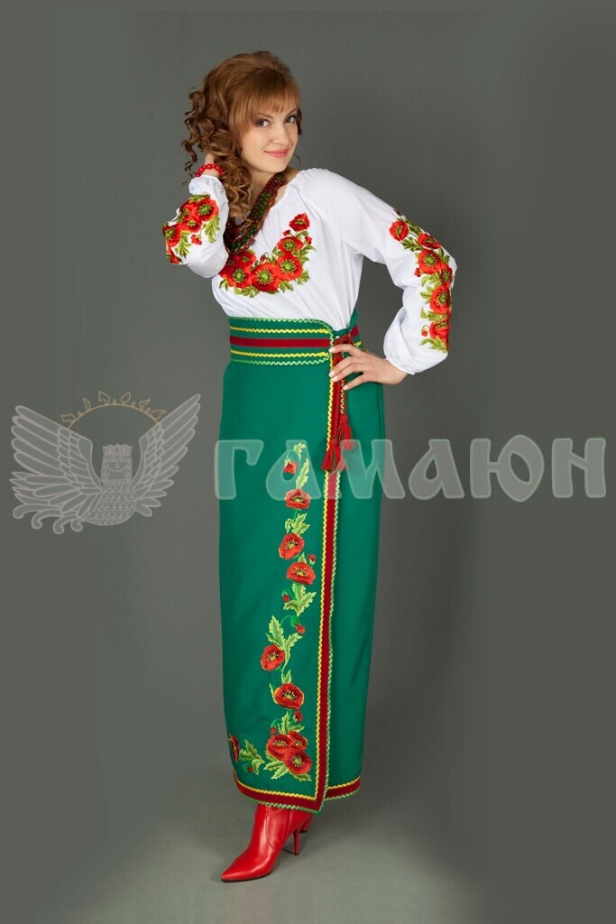 1. Довга зелена плахта, вишита маками