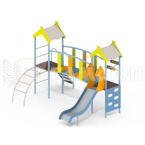 Складається з: Дві вежі з дахом 1 шт., Місток 1шт., Гірка 1 шт., Сходи 1 шт., Дошка з вирізами 1 шт., Сходи дугова 1 шт., Перемички 5шт., Рахівниці 2 шт.