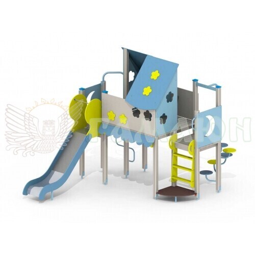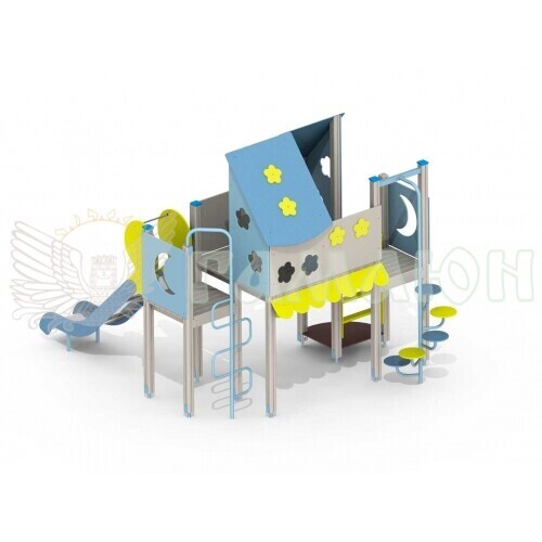 Складається з: Великий майданчик з дахом 1 шт., Гірка 1 шт., Сходи 1 шт., Гвинтові сходи 1 шт., Сходи зі скобами 1шт.