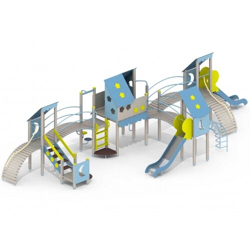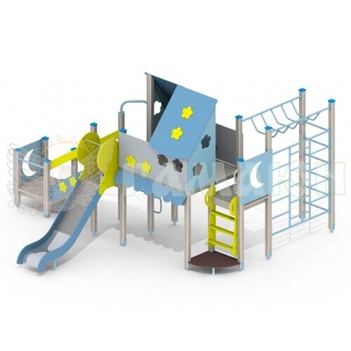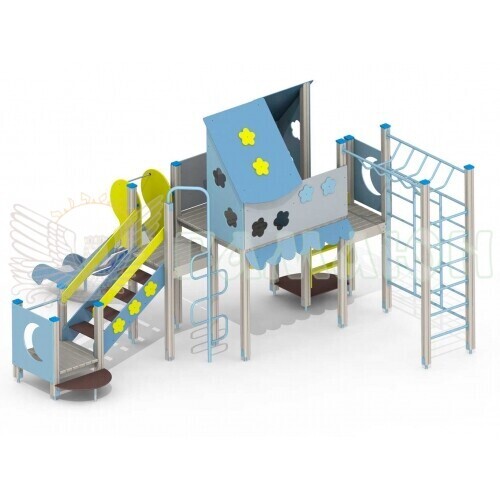Ігровий комплекс розрахований для дітей віком 3-6 років. Майданчики обладнані спеціальними перекладинами, що запобігають випадкові падіння. Верхня площадка має оригінальний дизайн даху, що закриває від сонця половину простору. Шведські стінки і рукоход допомагає розвивати м'язи і силу. Уздовж усього спуску гірки з двох сторін знаходяться захисні бортики висотою 10 см.