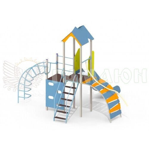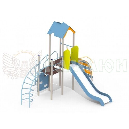 Ігровий комплекс розрахований для дітей віком 3-6 років. Складається з двох розташованих на різних рівнях майданчиків, одна з яких захищена зверху дахом. На них можна піднятися по звичайній або дугових сходах, а також радіальному мосту з канатом. Гірка обладнана зверху поперечиною, а з обох боків спуску – бортиками висотою 10 см.