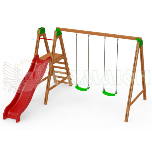 Комплекс розрахований для розвиваючих ігор дітей у віці від 3 до 6. Спеціальна перекладина нагорі гірки запобіжить падінню, також є бортики, розташовані по всій довжині спуску. Каркас виготовлений з натуральної деревини, тому безпечний для здоров'я дітей. Елегантний дизайн гармонійно впишеться в будь-який ландшафт, з його допомогою діти будуть більше проводити часу на свіжому повітрі.