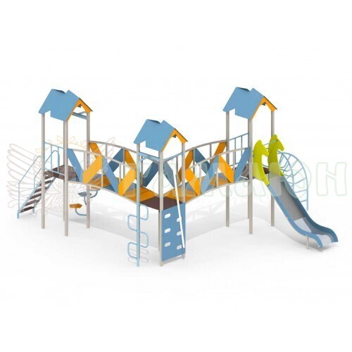Складається з: Майданчик з дахом 3 шт., Гірка 1 шт., Сходи 1 шт., Гвинтові сходи 1 шт., Сходи зі скобами 1шт., Дугові сходи 1 шт., Місток 2 шт., Дошка з вирізами 1 шт., Канат 1 шт.