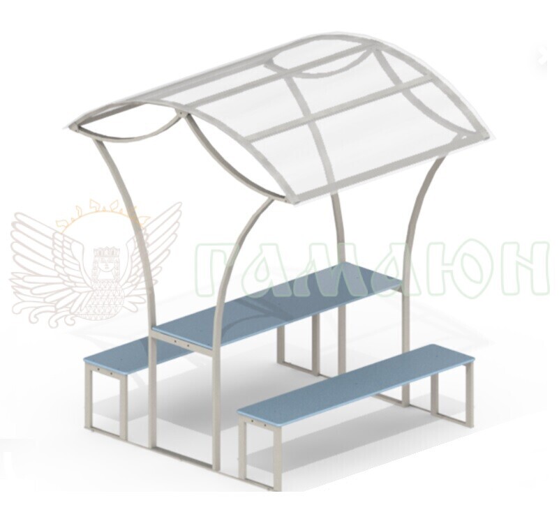 Складається з: Лавка 2 шт., Стіл 1 шт., Каркас 1 шт., Дах 1 шт.