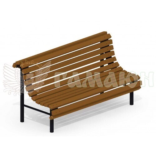 Лавка призначена для відпочинку дітей і батьків в парках, або під час гри на дитячому або спортивному майданчику. Сидіння виготовлено з дерева соснових порід, оброблених за технологією. Металевий каркас пофарбований поліефірної фарбою, яка захистить метал від корозії. Стримане забарвлення і форма лавочки прикрасить будь-який парк.