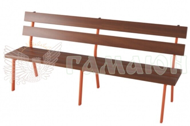 Основа лавочки - пофарбований металевий каркас з труби товщиною 2 мм і соснового бруса 40 мм. Дерево покрите подвійним шаром морилки плюс захисним лаком, довго зберігає свій первісний вигляд. Є кілька колірних рішень як тонера, так і ніжок.