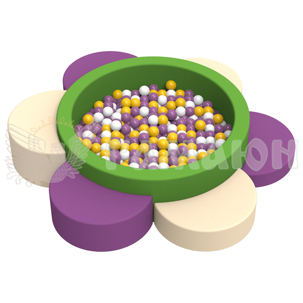 Сухий басейн «Пелюстки» являє собою конструкцію круглої форми, яка складається з дна і товстих м'яких стінок, які з'єднуються липучками. Також басейн доповнений пелюстками, що можуть служити як сходинками для допомоги малюку потрапити в басейн, так і окремими пуфами. У нього можна насипати пластикові кульки, м'які іграшки та ін.