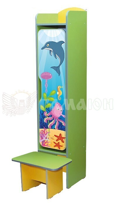Шафа дитяча 1-місна для роздягальні з лавкою, з фотодруком «Підводний світ»