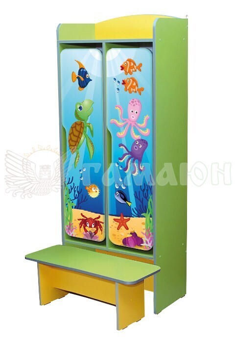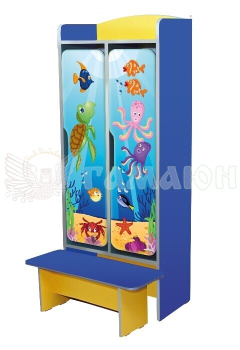 Шафа дитяча 2-місна для роздягальні, з лавкою, з фотодруком «Підводний світ»