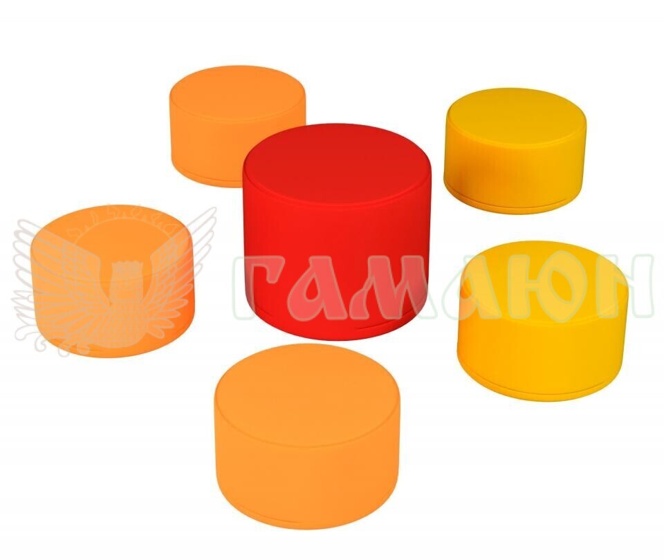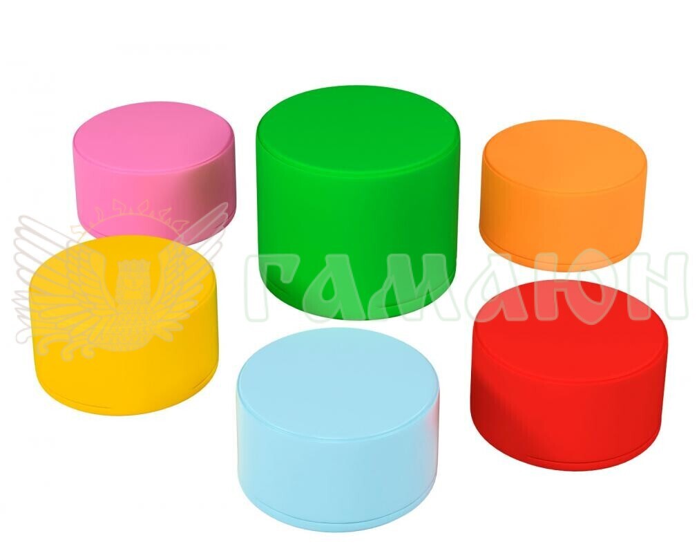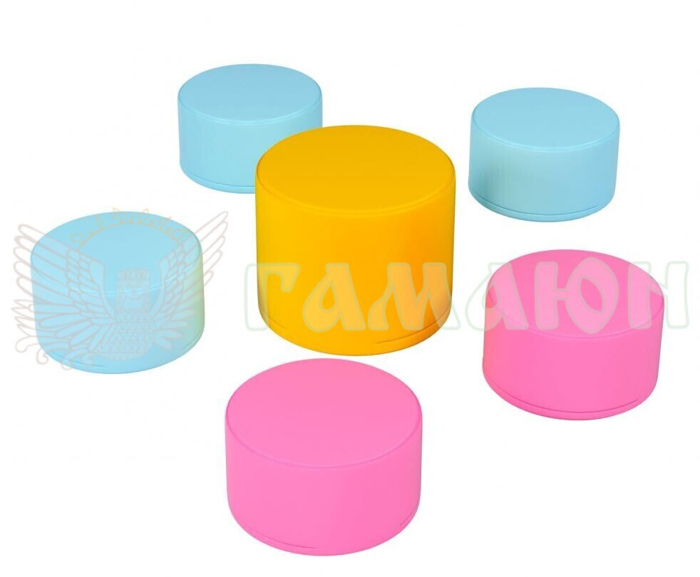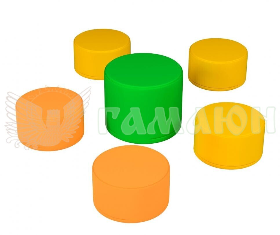 Комплект дитячих ігрових пуфів складається зі стола та п'яти стільців.