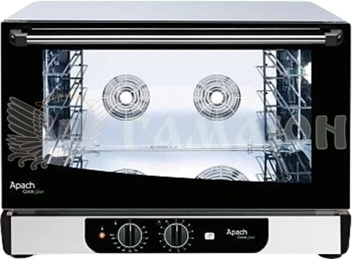 Конвекційна піч Apach AD46MI ECO має чотирирівневу конструкцію. Завдяки системі інжекторного парозволоження, будь-яка страва матиме привабливу скоринку. При необхідності існує можливість примусового впорскування в систему. За допомогою потужного вентилятора реверсивного можна готувати складні страви. Зручне управління не вимагатиме багато часу для навчання роботи з моделлю. Apach AD46MI ECO підходить для інтенсивного використання у кафе, ресторанах, закусочних. Обладнання якісно справляється з випіканням, виробництвом кондитерських виробів, роботою з напівфабрикатами. Корпус та камера виготовлені з нержавіючої сталі.
