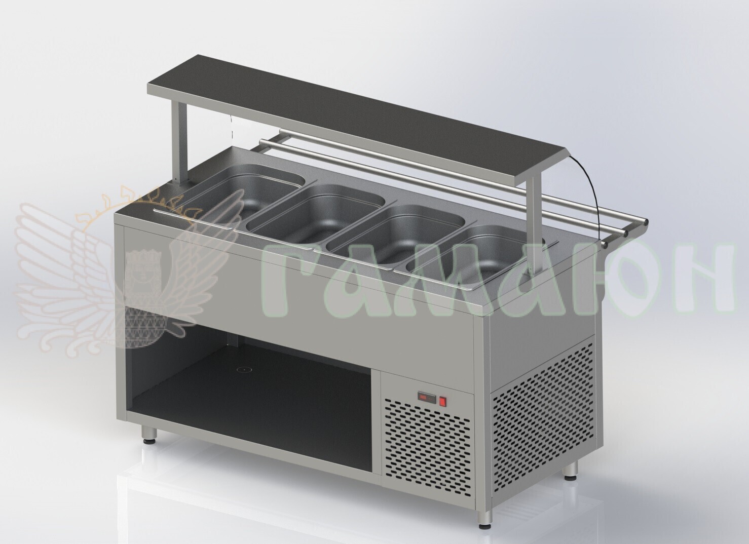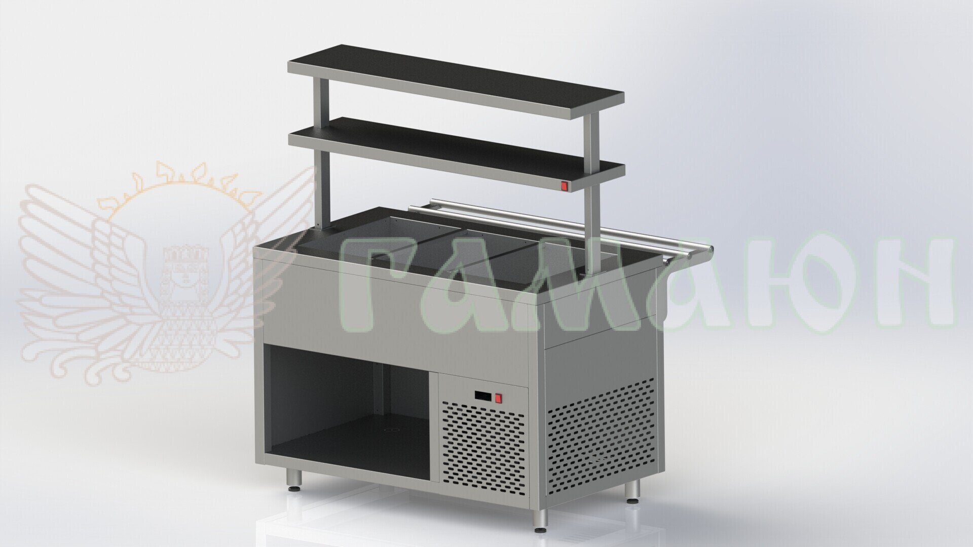 Прилавок холодильний – це одна із частин лінії роздачі, або окремий елемент. Призначений для зберігання, показу і роздачі страв. Регулювання температури від +1 до + 10С. Рівна охолоджувана стільниця має велику корисну площу. Виріб виготовлено з нержавіючої сталі.