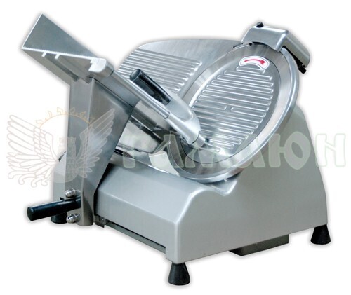 Напівавтоматичний, з ручною подачею продукту. Діаметр ножа 300 мм, товщина різання 0-18 мм