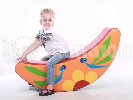 Гойдалка «Метелик» призначена для хитань однієї дитини. Гойдалка сприяє розвитку рухової активності у дітей, стимулює вестибулярні функції, зміцнює м’язи. Зроблена качалка з щільного поролону і обтягнута м’якою, приємною на дотик ПВХ тканиною, яка, до того ж, легко миється.