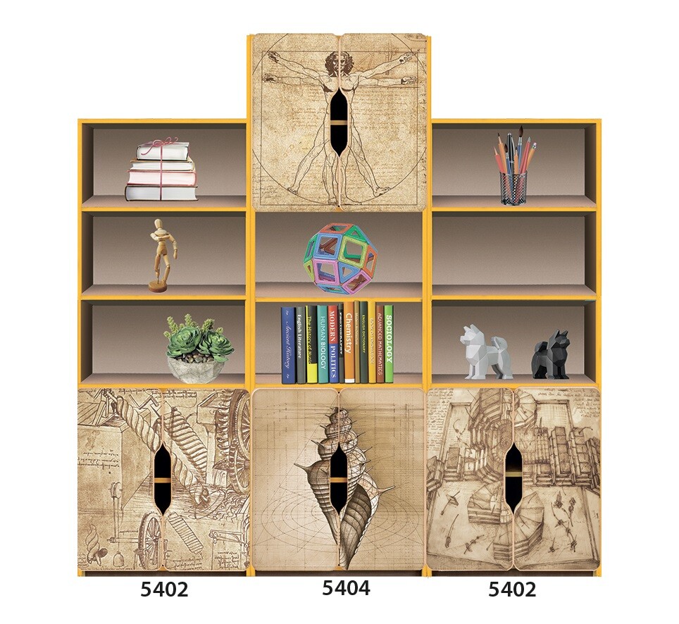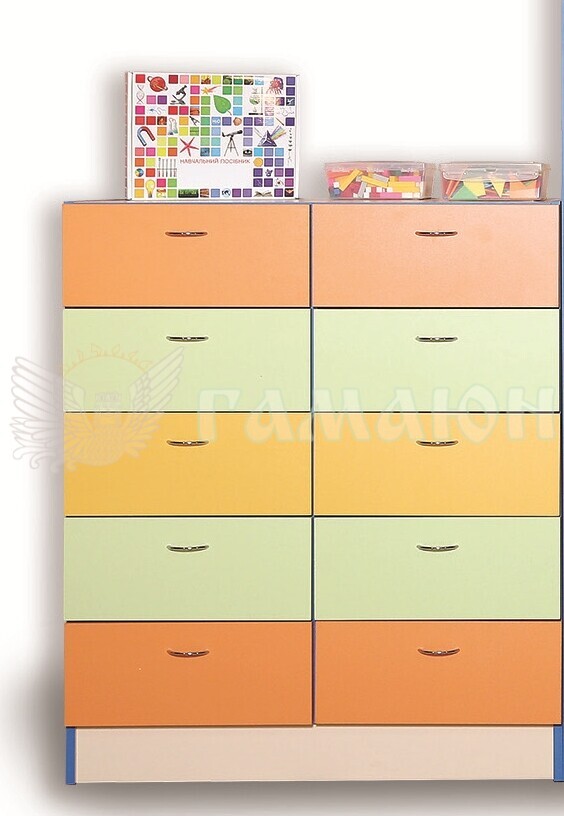 Конструктивні складові секції: фасади, кришки верхня і нижня, боковини і полки виготовлені з ламінованого ДСП товщиною 16мм, класу емісії Е1, обклеєної по торцях протиударною кромкою ПВХ товщиною 0,5 мм для полиць. ДСП кольорове для НУШ. Для кріплення використовується якісна фурнітура.
