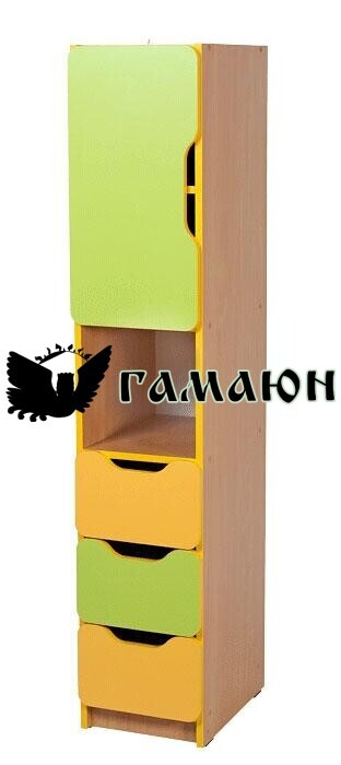 Пенал 1-дверний з нішою і 3-ма шухлядами повного висування.Виготовлений з ДСП: корпус 16 мм, фасад 18 мм.