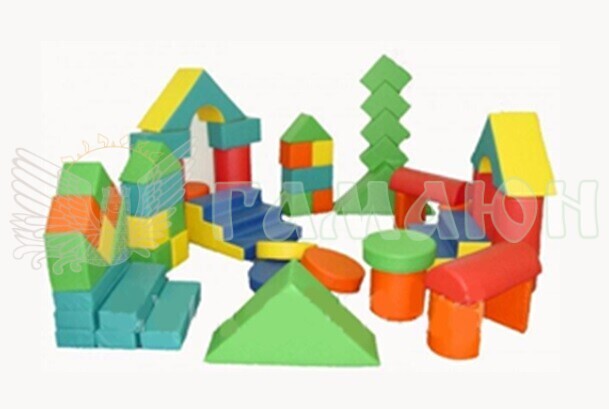 Якщо зібрати м'які модулі різних форм і розмірів вийде відмінний конструктор – великий, яскравий і, що найголовніше, безпечний, не має гострих кутів і твердих поверхонь. А різноманітні елементи набору, такі як дах, сходи, трикутник, коло, будь-якій дитині дозволять відчути себе початківцем містобудівником.