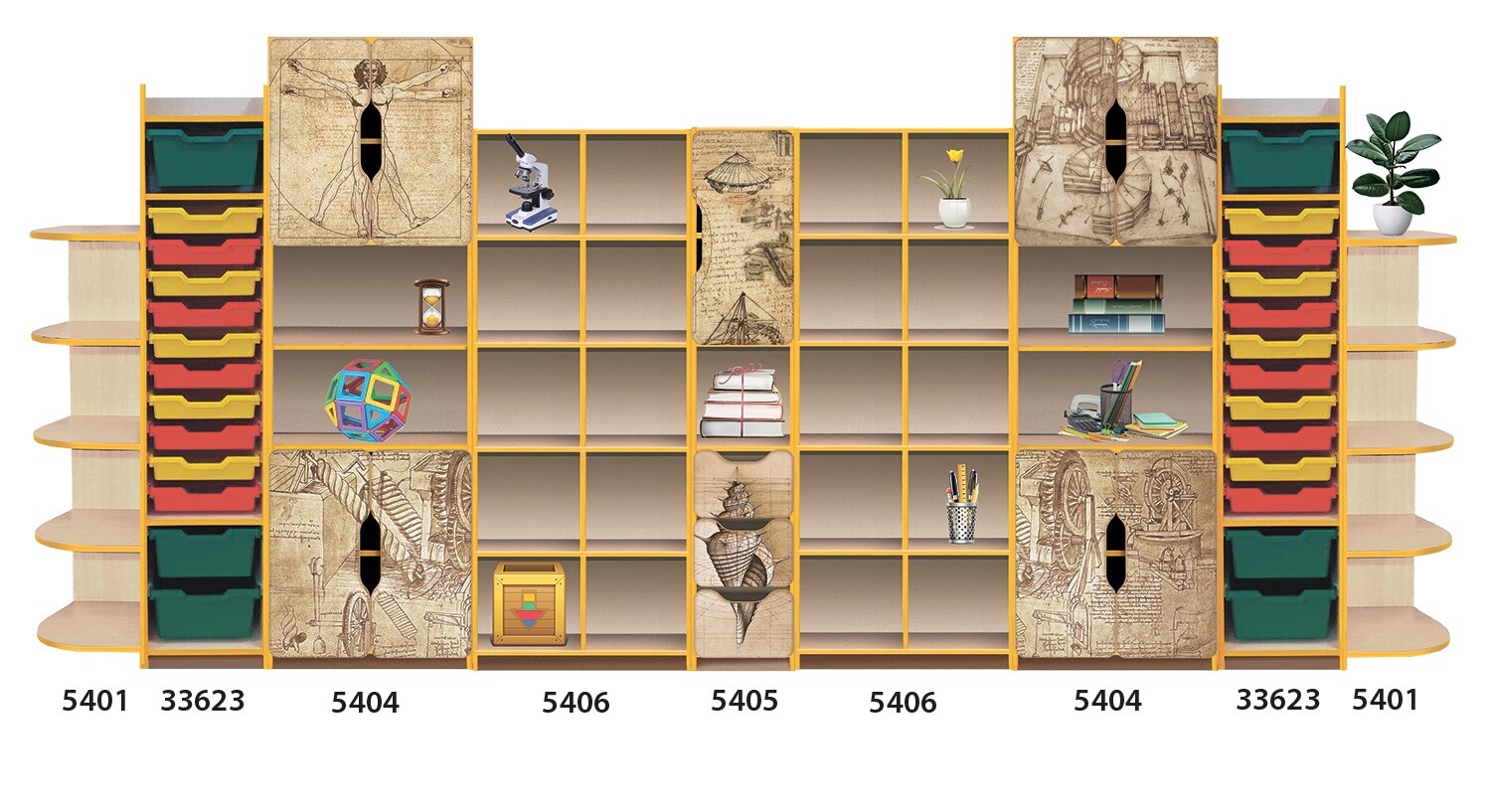 Дві тумби, що комплектуються пластиковими шухлядами розміром – 310х380х70 мм (36шт.). Шухляди встановлені на спеціальних направляючих.