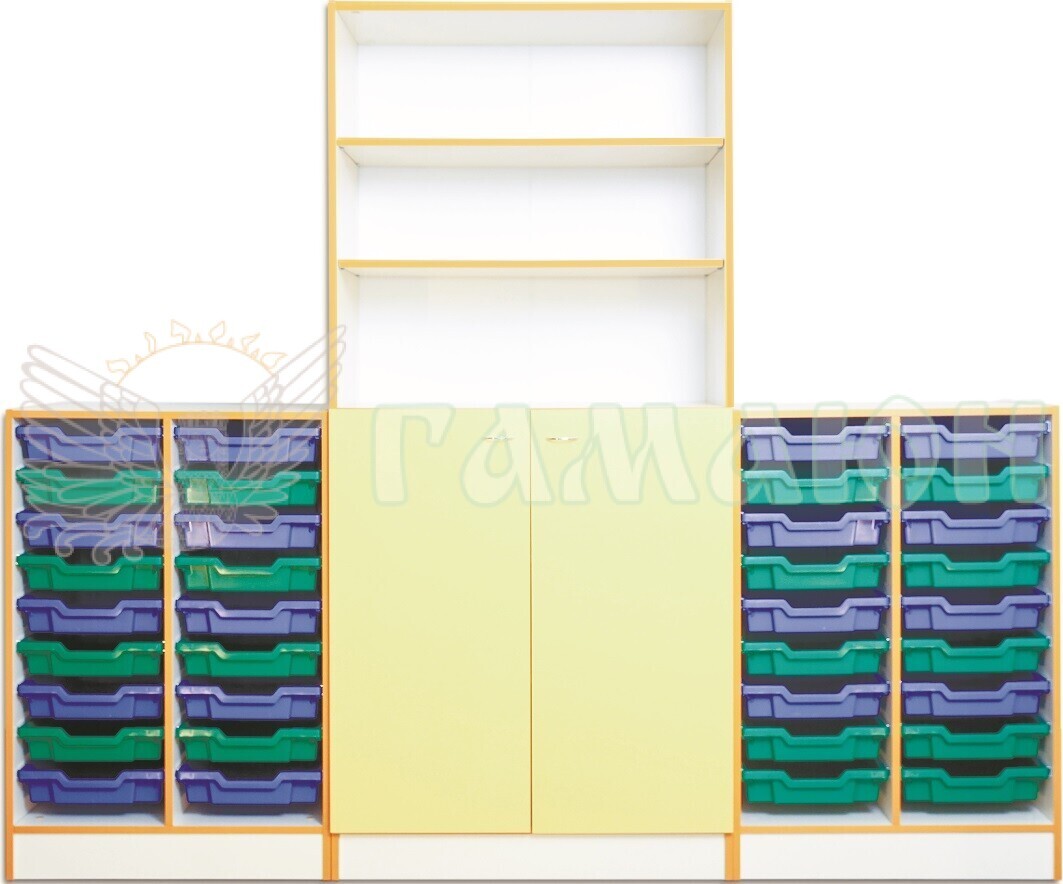 Дві тумби, що комплектуються пластиковими шухлядами розміром – 312х427х75 мм (36шт.). Шухляди встановлені на спеціальних направляючих.