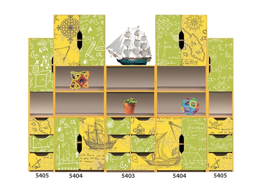 Шафа призначена для зберігання дидактичного матеріалу. Деревинні частини виготовлені з ламінованого кольорового ДСП товщиною 16мм, класу емісії Е1,