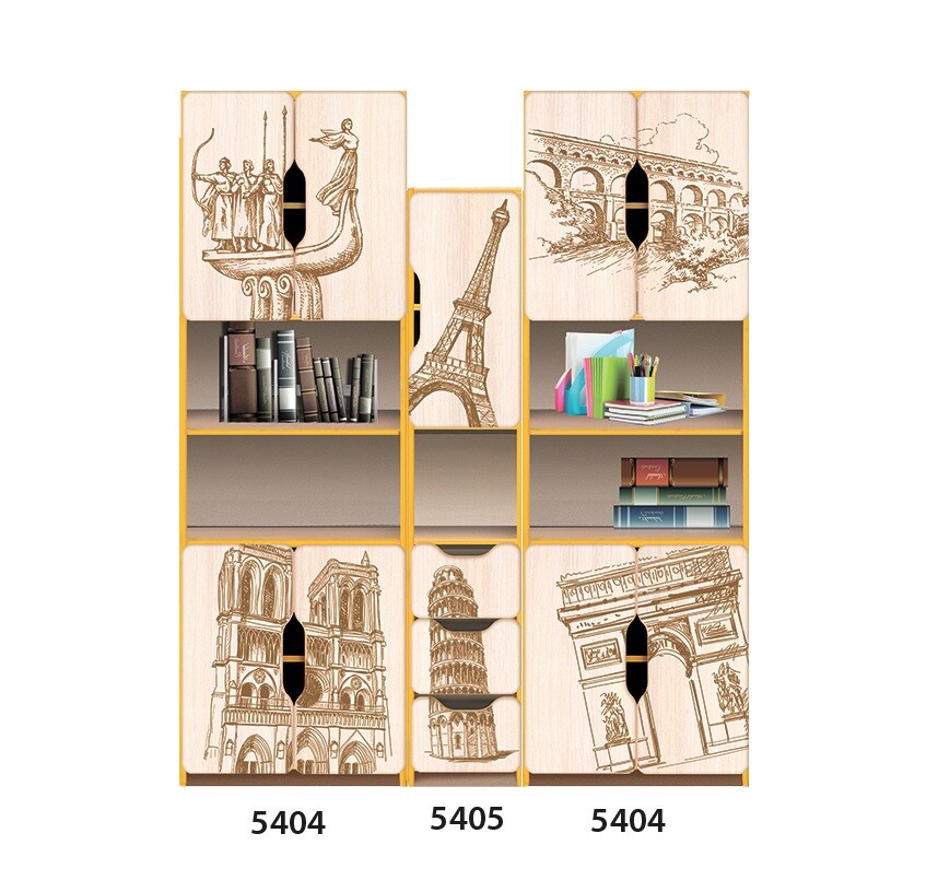 Колір ДСП – дуб молочний. Кромка жовтого кольору. Задня стінка: ДВП ламінована біла 3 мм.